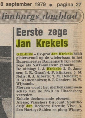 gereden op de wielerbaan in Geleen. Krekels was profwielrenner van 1969