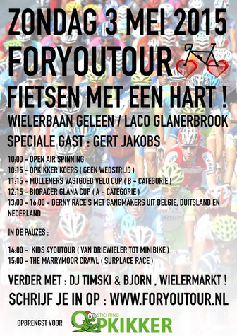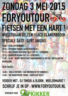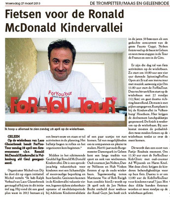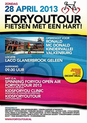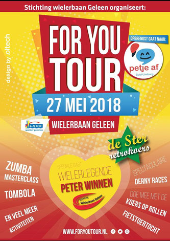 te halen voor het goede doel. Vanaf 2013 doneert het ForYouTour evenement aan goede doelen gerelateerd aan kinderen. Organisator ForYouTour Michel van Dijke zegt: “Ik heb een uitstekend team om me heen dat volgend jaar weer voor een mooi programma gaat zorgen. Afgelopen jaren waren o.a.