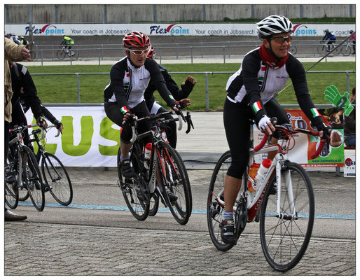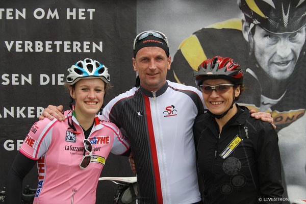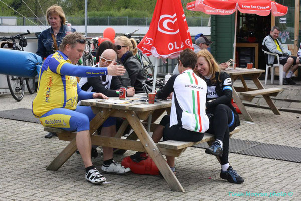 Race Xperience, werd er gezellig nagepraat. Dick Weisz, bestuurslid van de stichting LIVESTRONG_NL, sprak nog een dankwoord uit voor deze geslaagde dag en de prachtige donatie. Op het zonnige