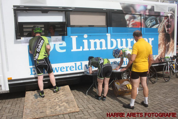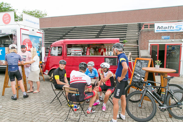 terras bij de Amstel Gold Race Xperience genoten de deelnemers nog gezellig na. Ook kregen zij bij vertrek een goedgevulde goodiebag van de diverse sponsoren.