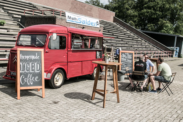 Eenmaal bij de finish op de Cauberg aangekomen werden deelnemers met applaus ontvangen door de andere gasten. Met een drankje en een heerlijke pastamaaltijd geheel verzorgd door de Amstel Gold