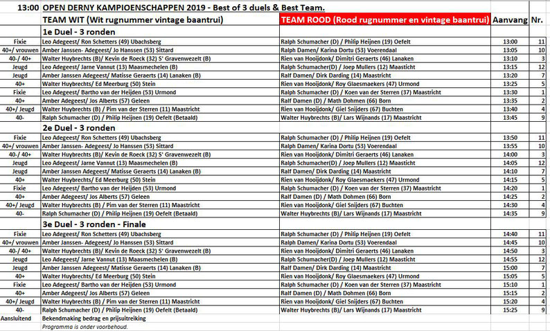 EINDKLASSEMENT OPEN DERNY KAMPIOENSCHAP 2019.