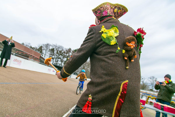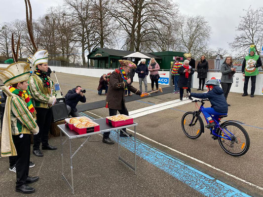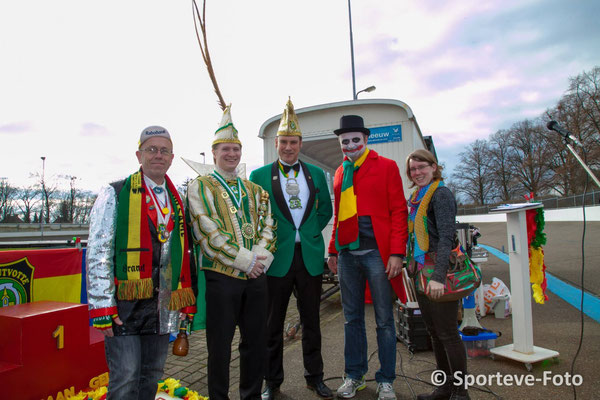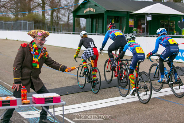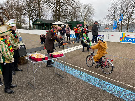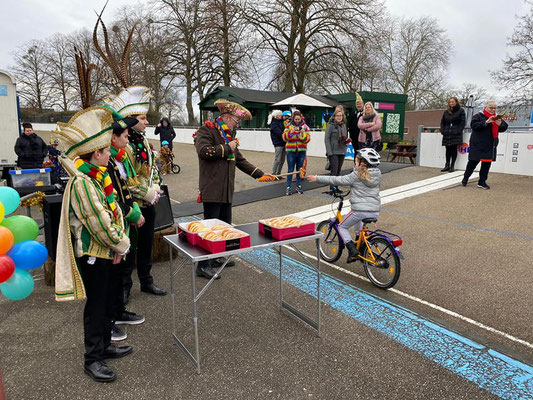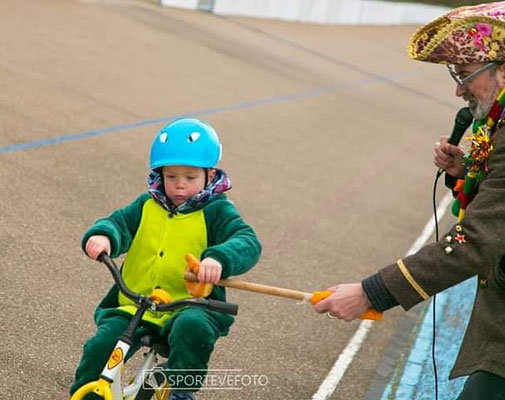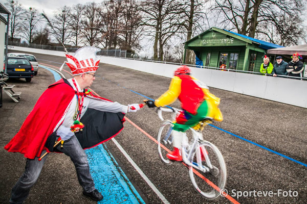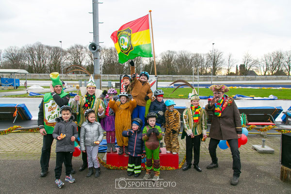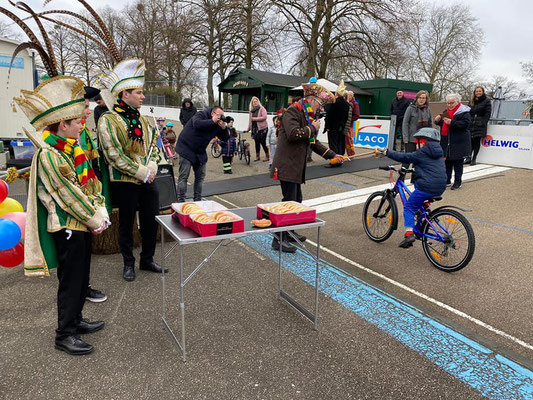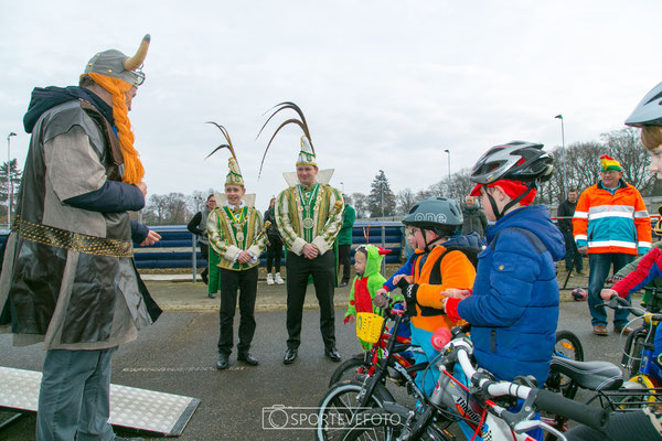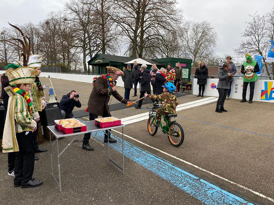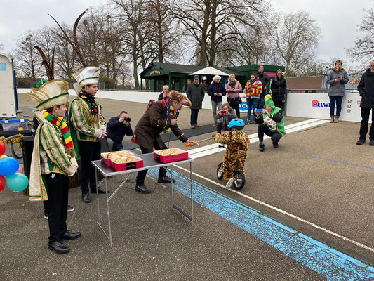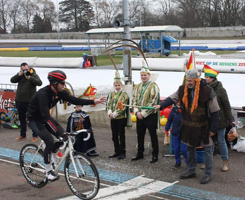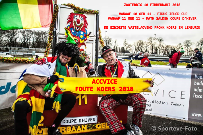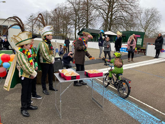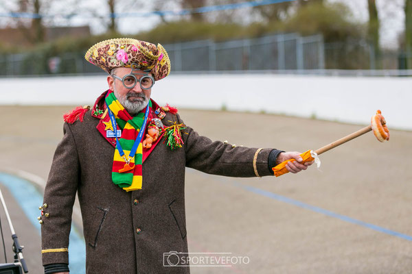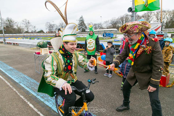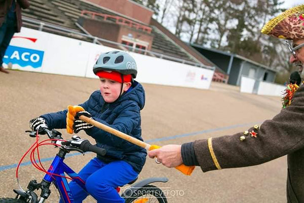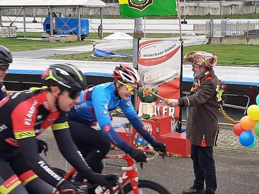 11 seconden over 11 gaf Mad 1e Jeugdprins in de Orde van Wielerbaan Geleen onder toeziend oog van Prins Ben Willems 1e en Jeugdprins Stijn 1e van De Sjoutvotte het startsein voor de 6e Foute Koers.