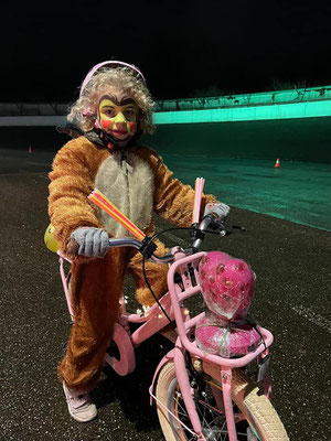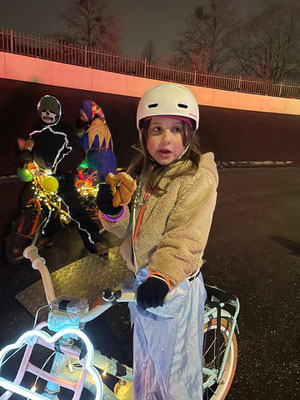 Kinderen verkleed op de fiets