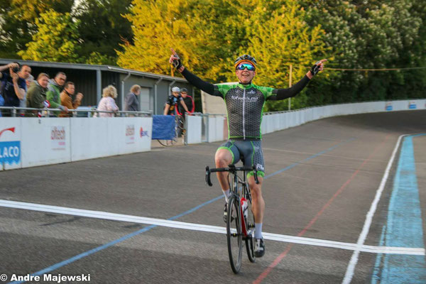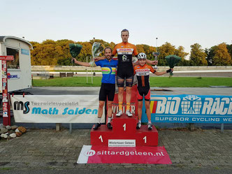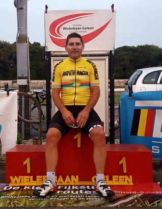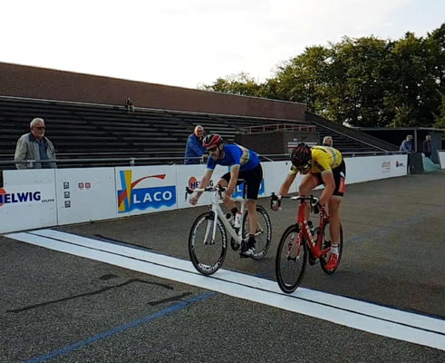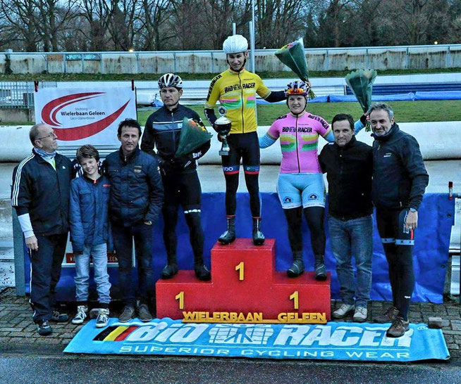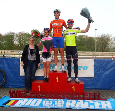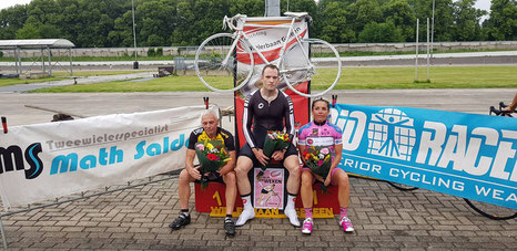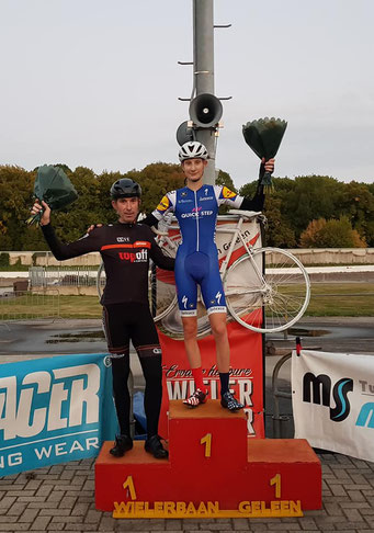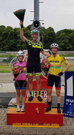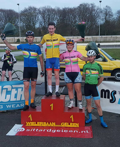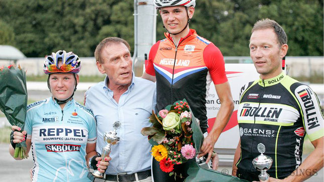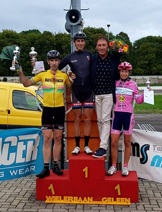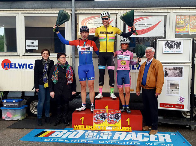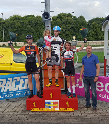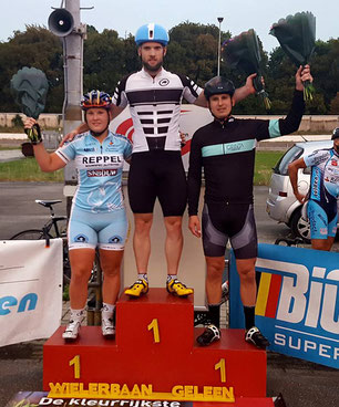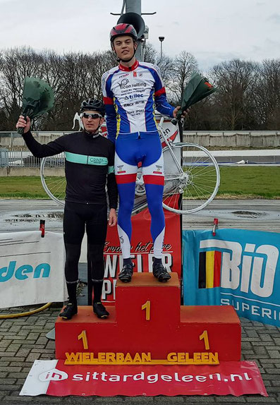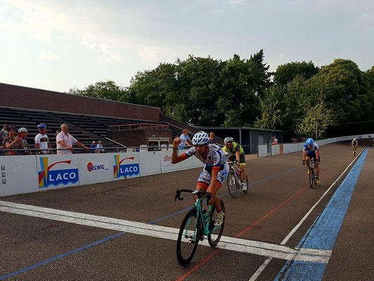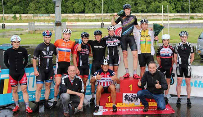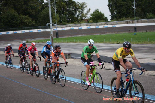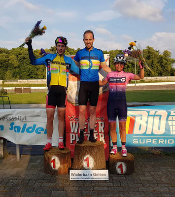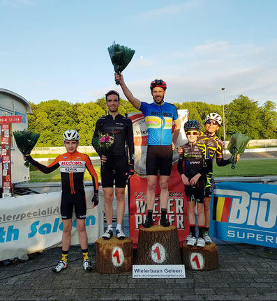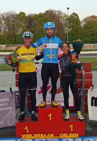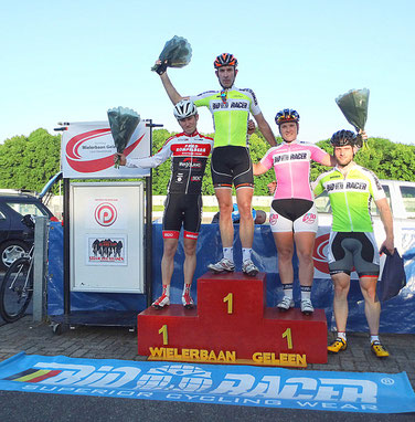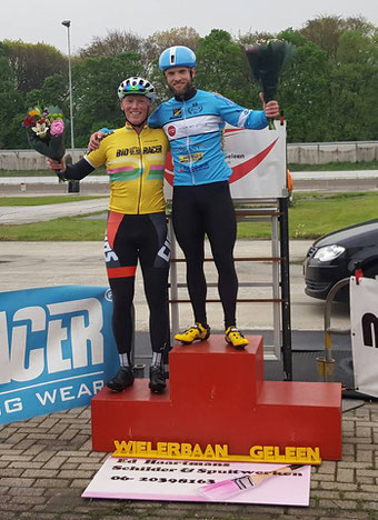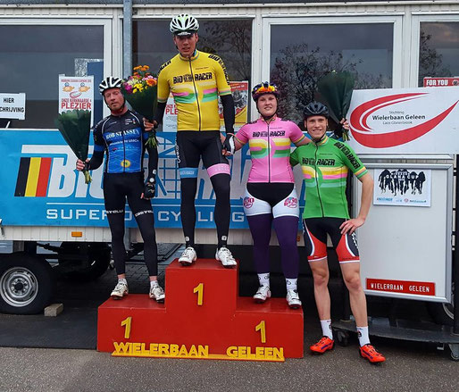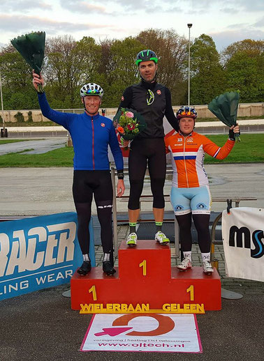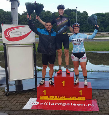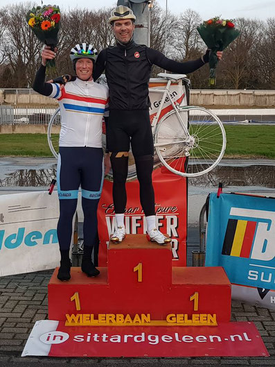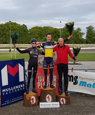 1. Jules Bremers (Brunssum) 3pnt, 2. Roel Jetten (Einighausen)2pnt, 3. Mark Steins (Linne) 1pnt. Meer foto's op https://www.facebook.com/groups/wielerbaangeleen/