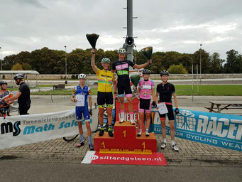 Milan Vader van het KNWU- MTB Team uit Sittard wint overtuigend de Hub Vinken Challenge. Bram Linnartz, ik noem hem het nieuw talent op onze wielerbaan, werd tweede. Houd deze renner in de smiezen.