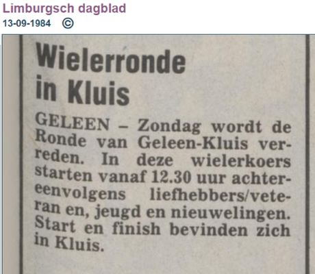 Dinsdag 17 september (3e dinsdag van september) is voor de zesde keer de Kluizenaarsronde. Het is inmiddels traditie dat er bij de eeuwenoude Kluis in Geleen wordt gestart en na vier ronden door de wijk men richting de wielerbaan fietst voor de finale. Deze keer mag iedereen met een fiets (vanaf 6 jaar) in de wijk meefietsen. Ouders en of verzorgers worden verzocht de jongste deelnemers te begeleiden. We vertrekken om 19:00 uur en inschrijving c.q. doneren kan al vanaf 18:15 u in de Sint - Janskluis/ Kluis 1, 6165 EL Geleen.