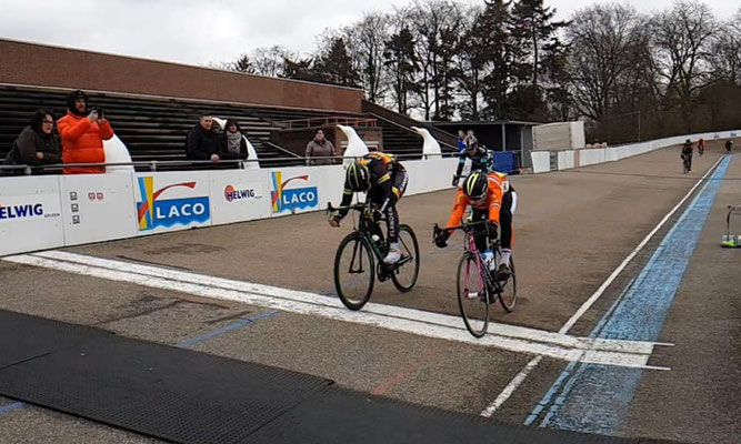 Lars Wijnands was voor het eerst dit jaar weer op de wielerbaan en meteen wint hij overtuigend de baanrit. Geweldig dat Lars de koers die de naam van zijn vader draagt wint.