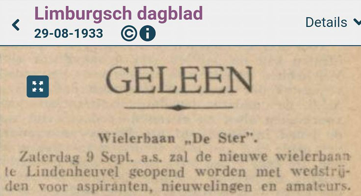 In 1931 werd wielervereniging Heidebloem opgericht die in sportpark Lindenheuvel aan de Meidoornlaan Rozenlaan een een betonnen wielerbaan hebben aangelegd. De wielerbaan werd "De Ster" genoemd.