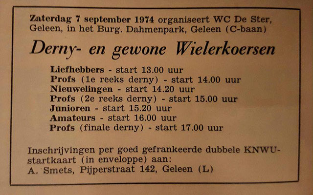 Heeft u foto's, kleding, prijzen of andere info betreffende WCL De Ster? Laat het ons weten en stuur een mail naar wielerbaangeleen@gmail.com dan plaatsen we deze op onze pagina.